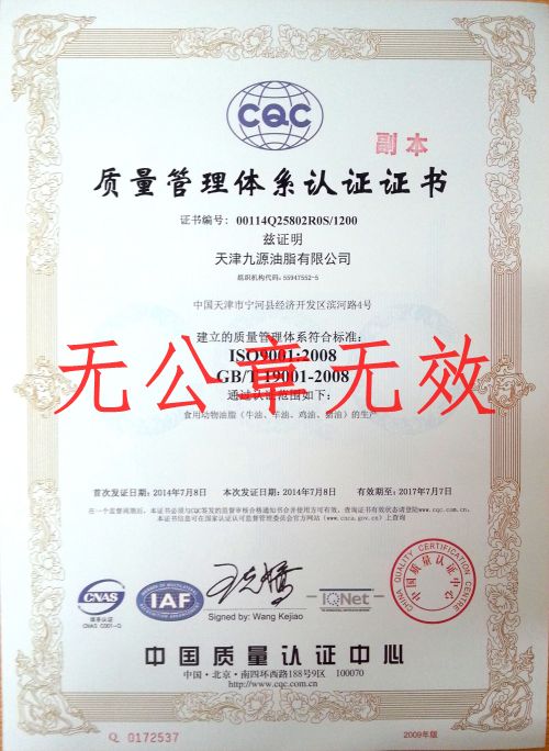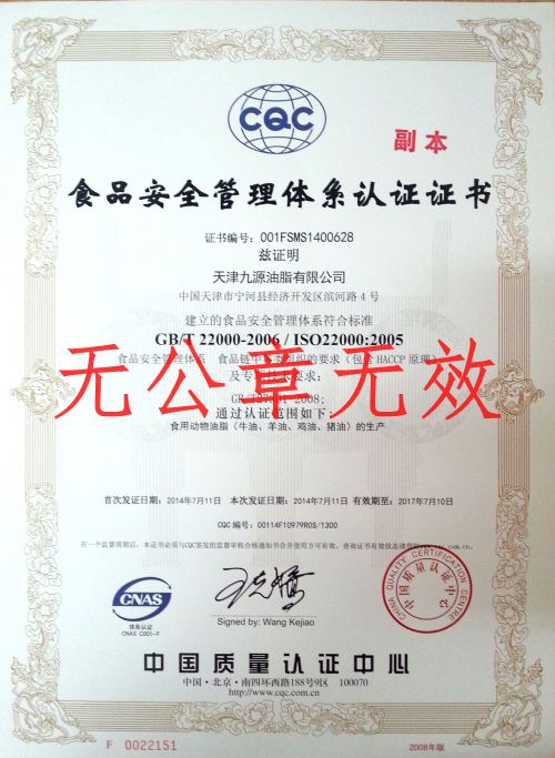本公司于2014年6月20日能過(guò)ISO9001:2008質(zhì)量管理體系及SIO22000:2005食品安全管理體系雙項(xiàng)認(rèn)證的現(xiàn)場(chǎng)認(rèn)證審查部分,于2014年7月10證書全部下達(dá)。